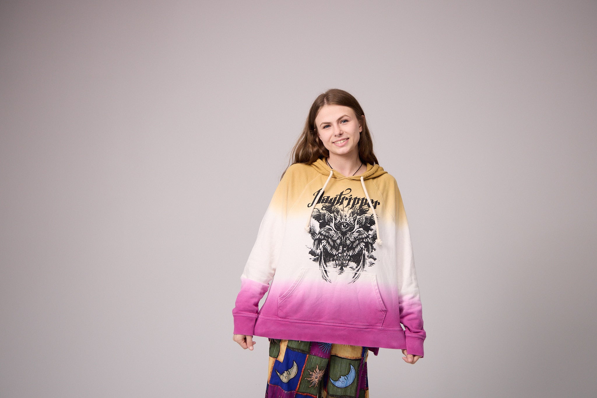 Woman’s size Medium. Hand dyed and screen printed in USA